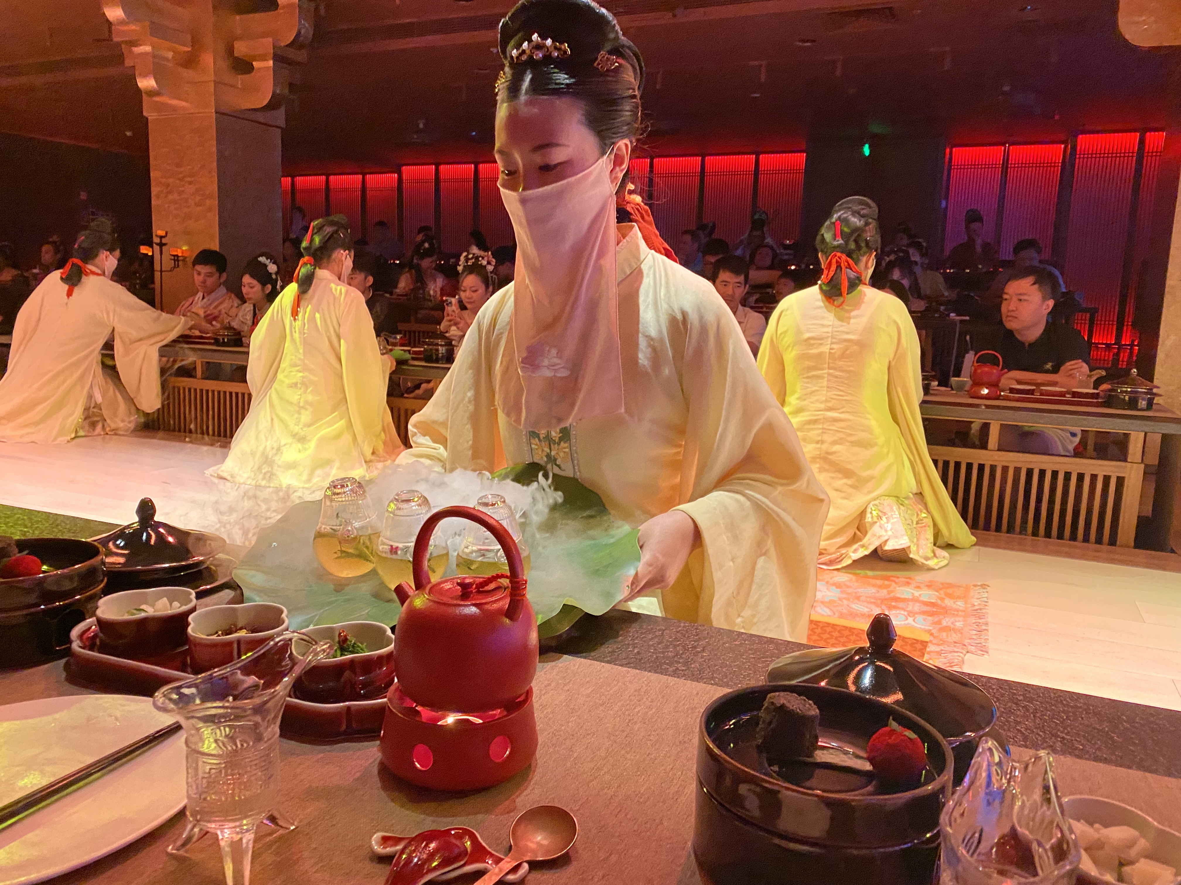 宮廷時代にタイムスリップ!300着以上の漢服の中からお好きな衣装と装飾品を選び、舞踏ショーを見ながら宮廷料理を楽しみます。
